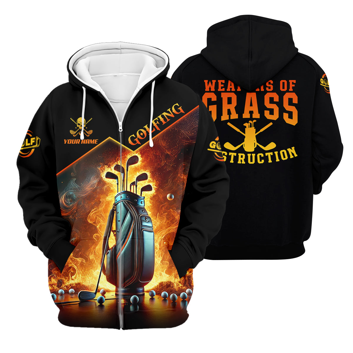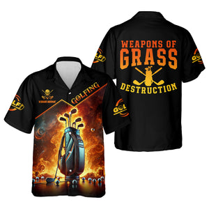 Bring the heat to the green with this bold and hilarious golf polo! Featuring the statement-making phrase "Weapons of Grass Destruction", this shirt is perfect for golfers who take their swing seriously—but not themselves. Whether you're teeing off or kicking back at the clubhouse, this fiery design turns heads and sparks conversation.
