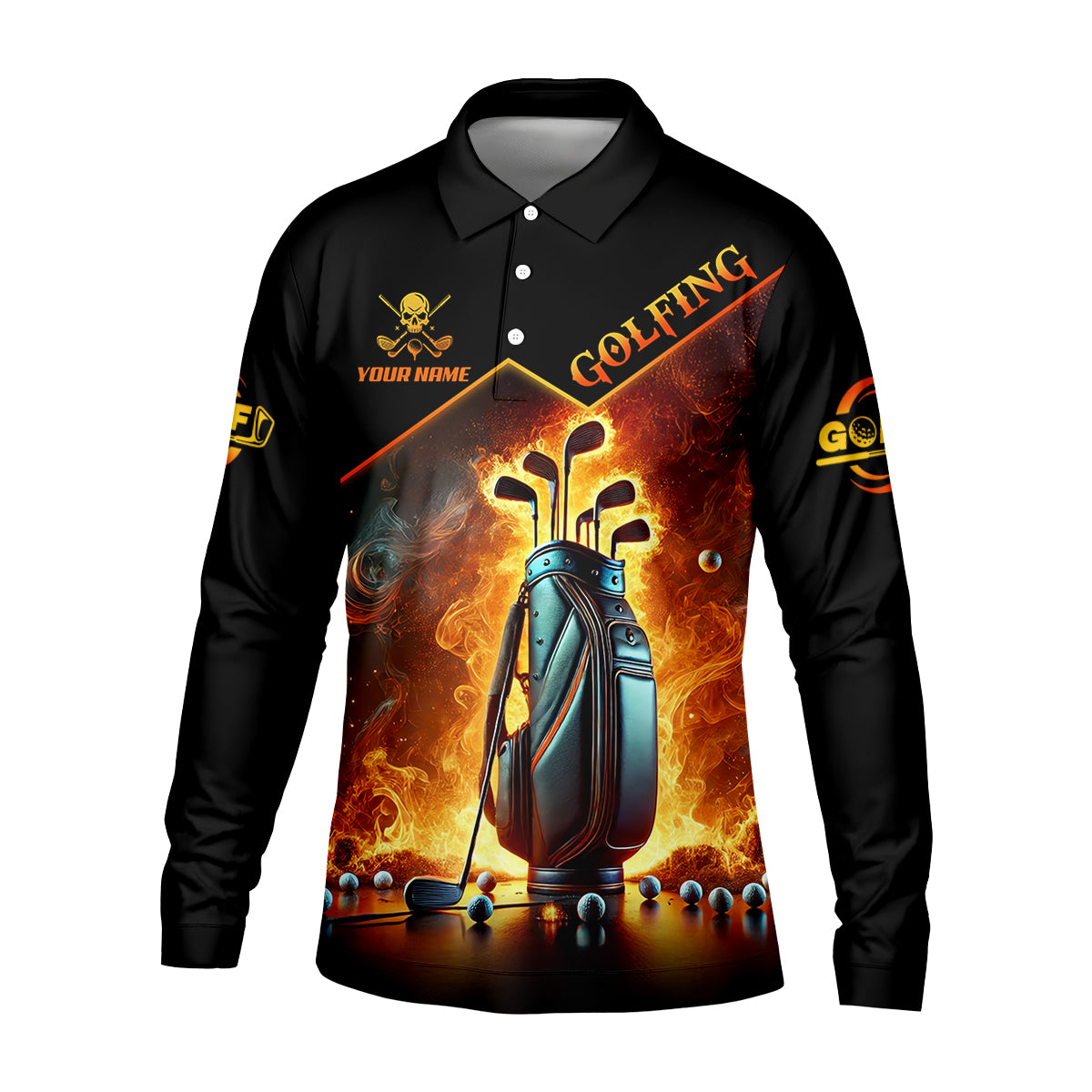 Eye-Catching Design: The dynamic “fire” color palette and witty slogan make this polo a standout on and off the course.