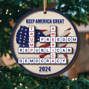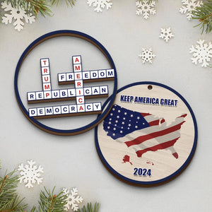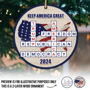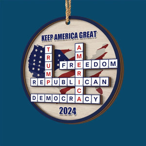 Keep America Great, Trump2024 Crossword Puzzle 2-Layer Wooden Ornament, Christmas Decor