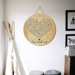 Kenny Chesney Me And You Script Heart Song Lyric Art Print Round Wood Sign, Wood Signs For Home