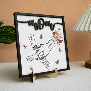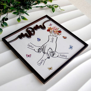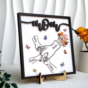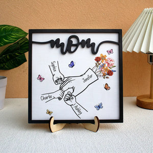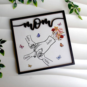 Kids Holding Mom‘s Hand Birth Month Personalized 2-Layer Wooden Plaque, Mother's Day Gift, Gift For Mom