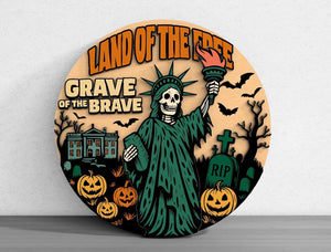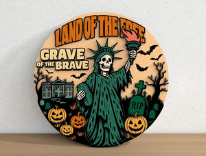 Land Of The Free Patriotic Halloween Wood Signs Outdoor, Halloween Door Hanger, Halloween Door Decor
