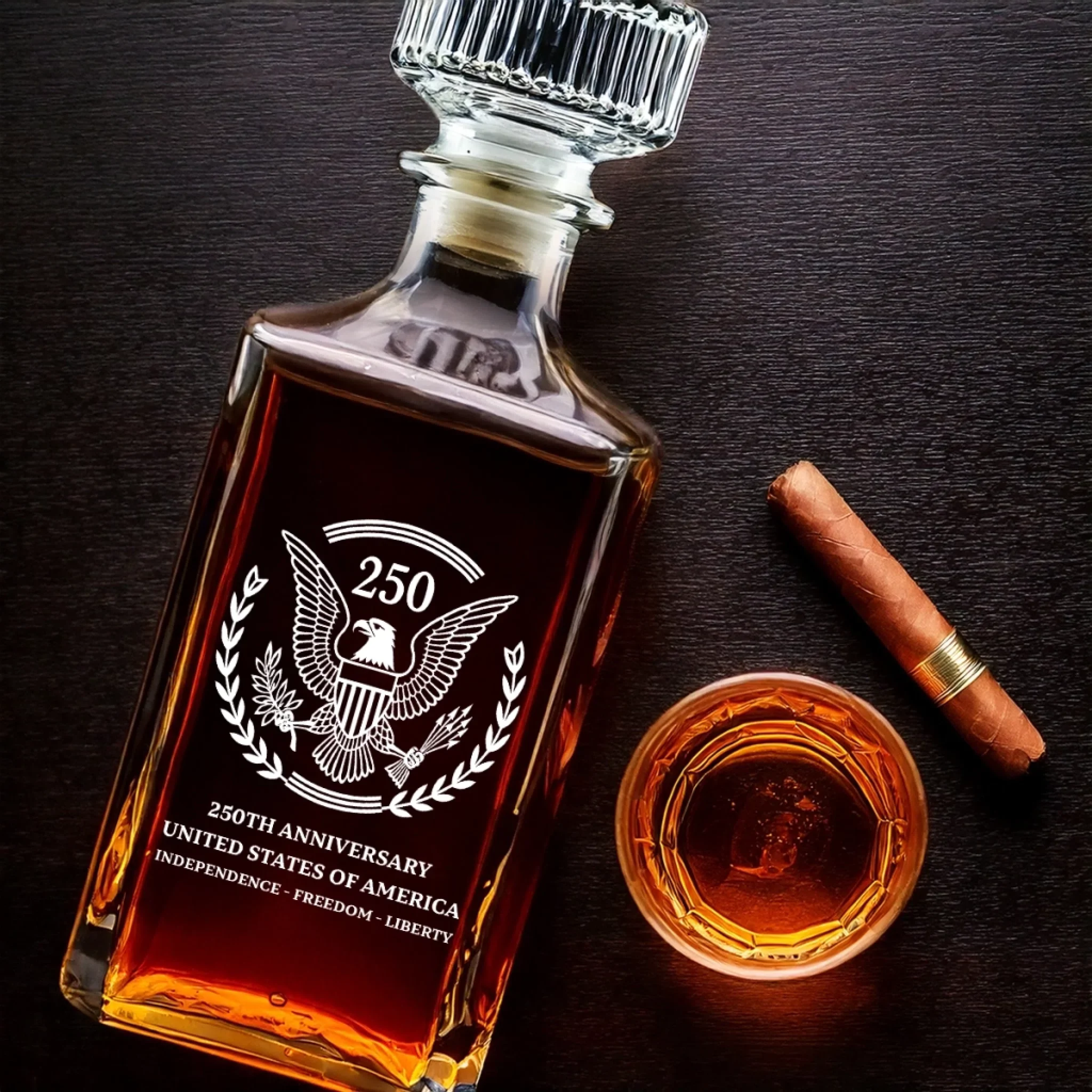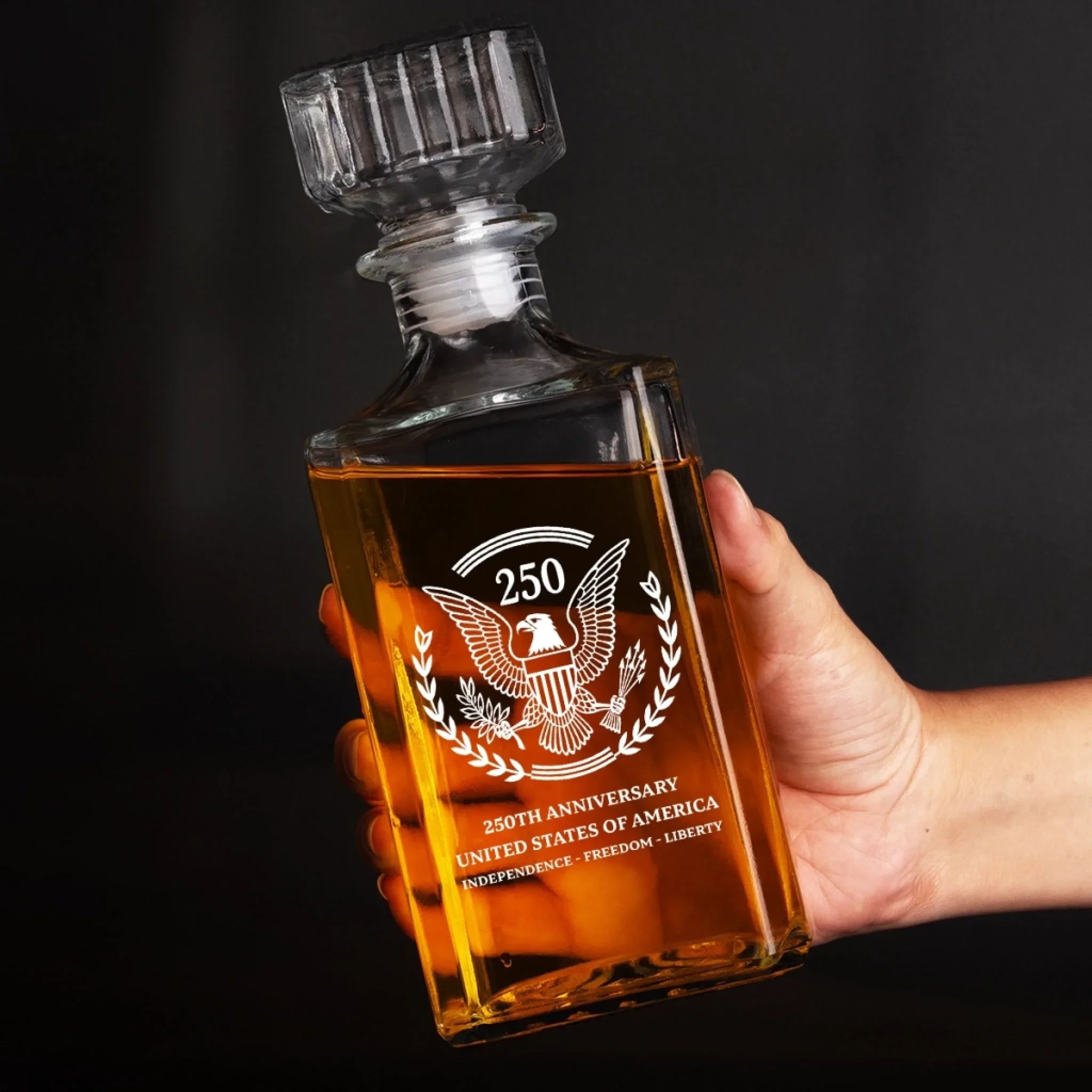 Let Freedom Echo 250 Years Loud Glass Whiskey Decanter Set American Glassware Wine Glasses Set