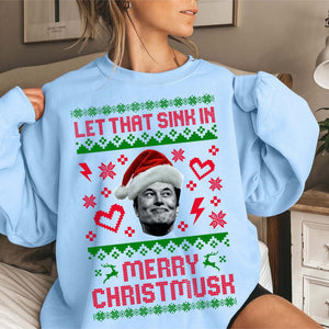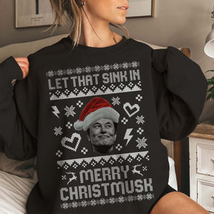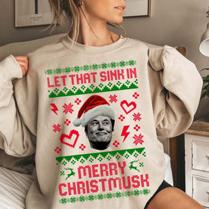 Let That Sink In Merry Christmusk Elon Musk Funny Christmas Sweatshirt