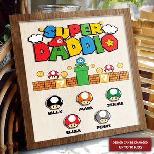 Level Up Supper Daddio Personalized 2 Layered Wooden Sign, Gifts For Dad, Father's Day Gifts