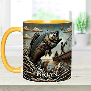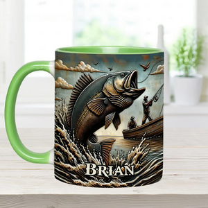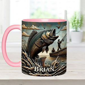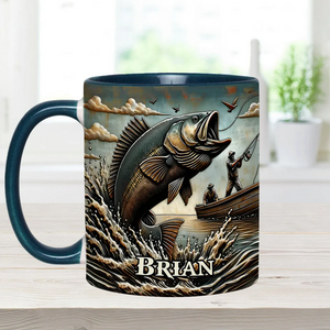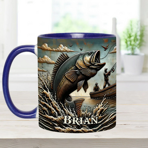 Love Fishing Accent Mug, Custom Name Fishing Cup, Gift For Fisherman, Fishing Gifts For Men