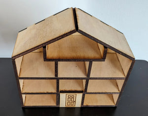 Option 1 - Raw (Unpainted, Laser-Cut Only): A precisely cut wooden house frame, left unpainted for you to customize and decorate in your unique style. This option is perfect for DIY enthusiasts who want to add their own colors and designs.