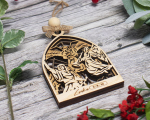 Celebrate the Christmas season with our Nativity Scene Christmas Ornament, a beautifully crafted piece that brings the true spirit of Christmas into your home. This exquisite ornament features a three-layer wooden design, with intricate laser-engraved details of the nativity scene, showcasing Mary, Joseph, Baby Jesus, and the surrounding figures. The 3-layer construction adds depth and dimension, making it a standout addition to your holiday decor.