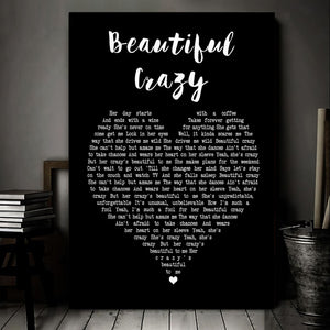 Luke Combs Beautiful Crazy Black Heart Song Lyric Art Print Canvas Print Frames