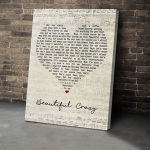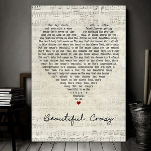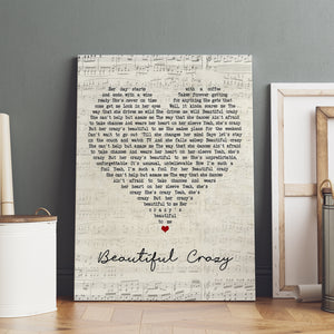 Luke Combs Beautiful Crazy Script Heart Song Lyric Art Print Canvas Print Frames