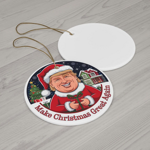 Celebrate the holiday season with a dash of humor and a touch of patriotism! The "Make Christmas Great Again" Trump2024 Ornament is the perfect addition to your Christmas tree. This fun and festive ceramic ornament features a bold design that blends holiday cheer with a playful political twist. Whether you're a fan of the former president or just love quirky holiday decor, this ornament is sure to be a conversation starter!