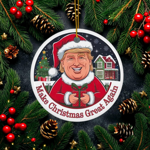 Make Christmas Great Again Trump2024 Ceramic Ornament – Fun Holiday Decor