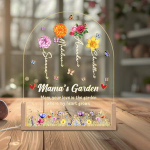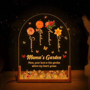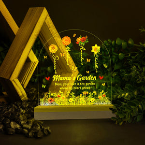 Mama Garden's Personalized Birth Month Flower Acrylic LED Night Light, Mothers Day Gift