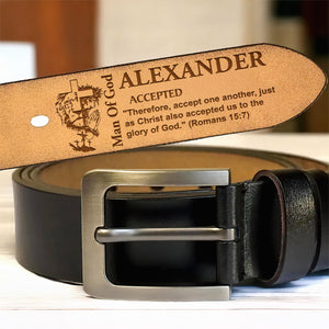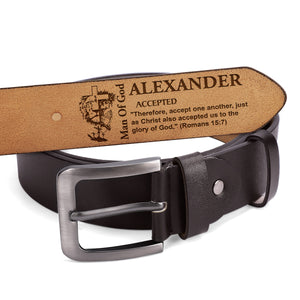 Man Of God Personalized Engraved Mens Leather Belt, Belts For Him