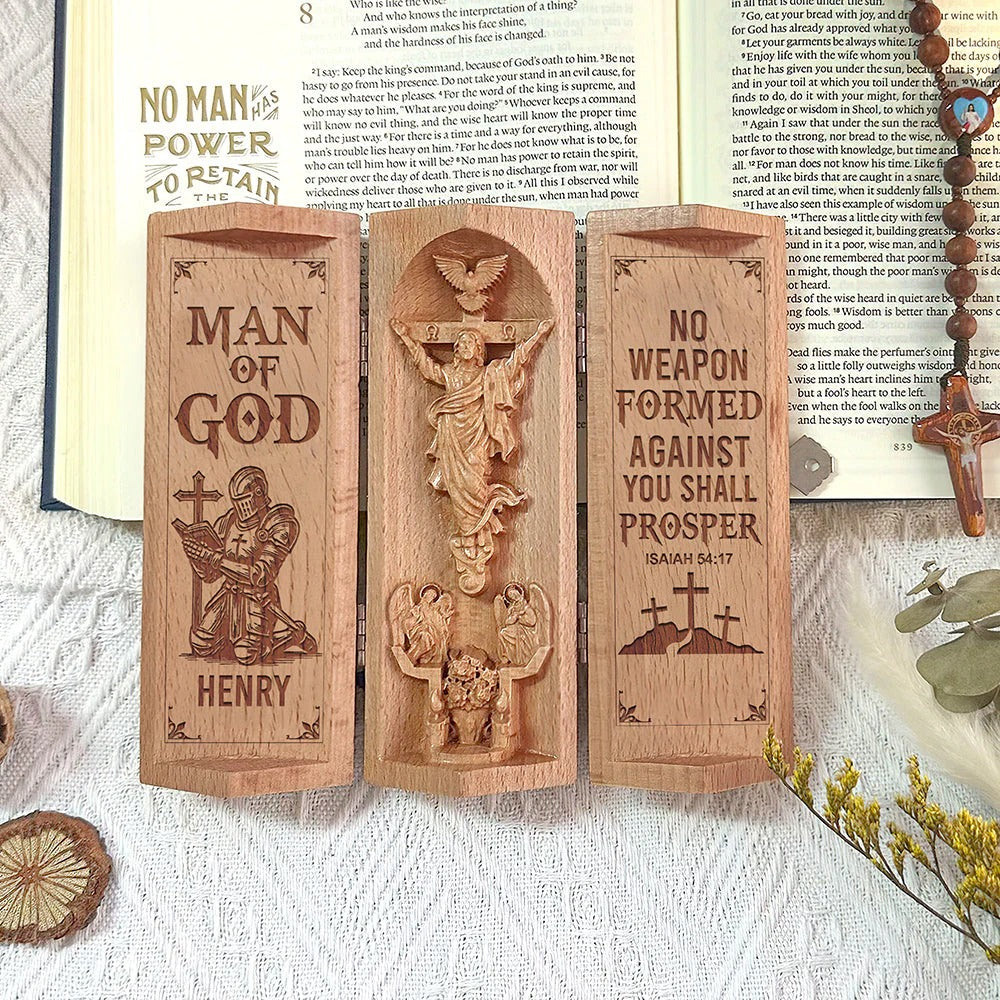 Man Of God, Personalized Openable Wooden Cylinder Sculpture of Jesus Christ, Christian Gifts