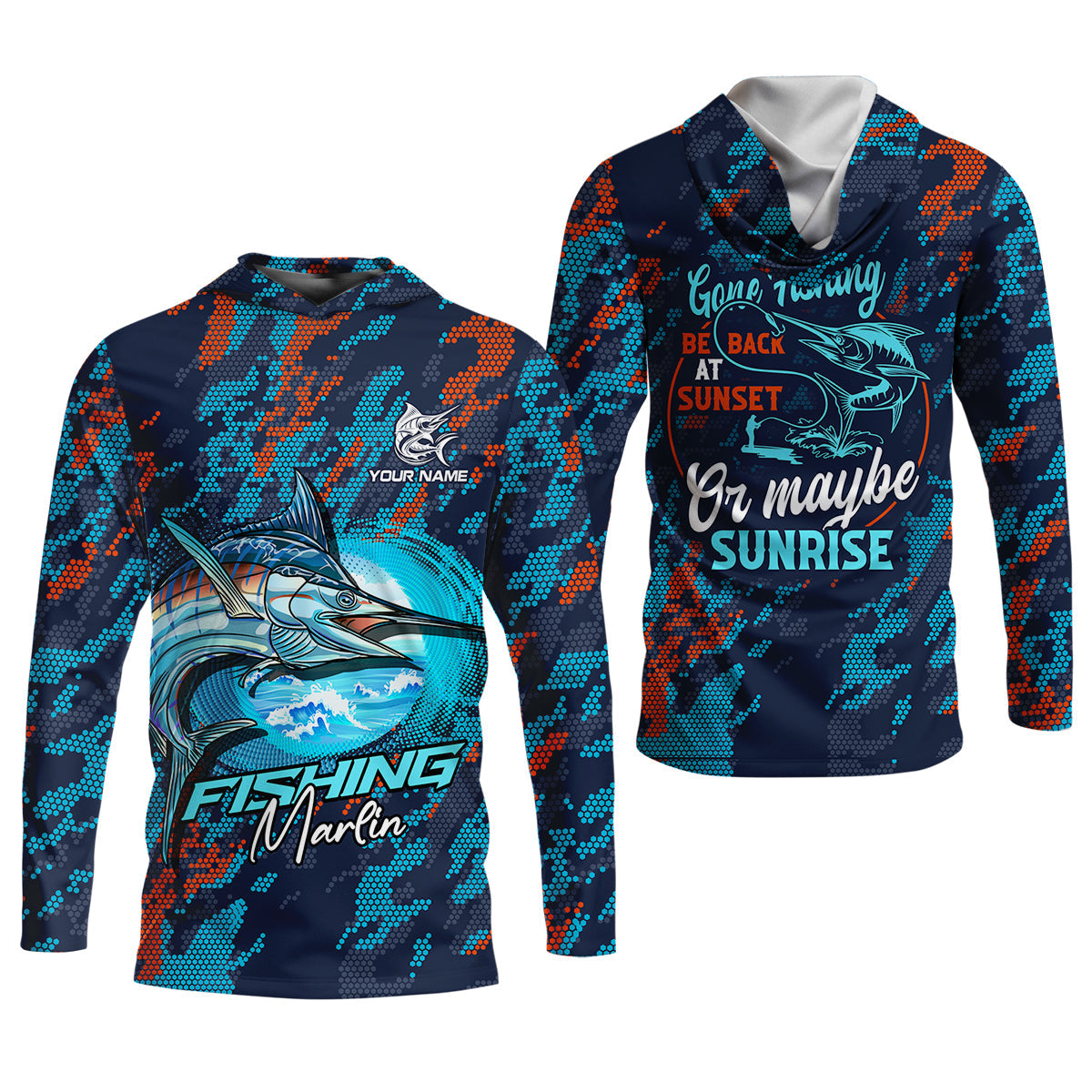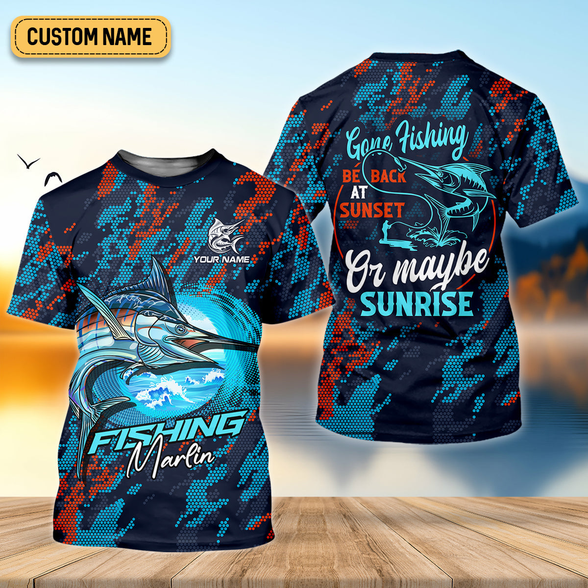 Marlin Fishing UPF Shirts, Gone Fishing Be Back At Sunset Or Maybe Sunrise Shirts, Fishing Shirts For Women