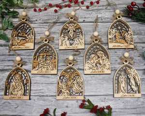 Celebrate the Christmas season with our Nativity Scene Christmas Ornament, a beautifully crafted piece that brings the true spirit of Christmas into your home. This exquisite ornament features a three-layer wooden design, with intricate laser-engraved details of the nativity scene, showcasing Mary, Joseph, Baby Jesus, and the surrounding figures. The 3-layer construction adds depth and dimension, making it a standout addition to your holiday decor.