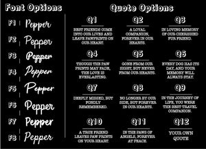 Give the gift of everlasting memories with our memory animal wood sign. Whether it's for yourself or a loved one, this heartfelt token will serve as a beautiful reminder of the special bond shared with a beloved animal companion. Celebrate their life and legacy with this timeless keepsake.
