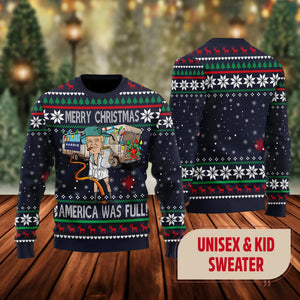 Add a bold and humorous touch to your holiday wardrobe with this "Merry Christmas, America Was Full" ugly sweater! Featuring festive patterns and political satire, this sweater is perfect for holiday parties and gatherings.