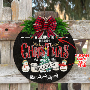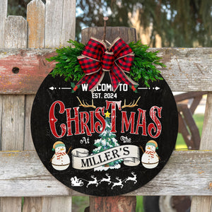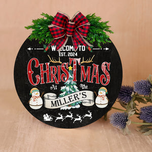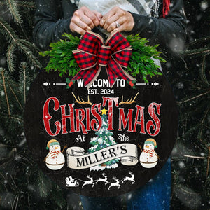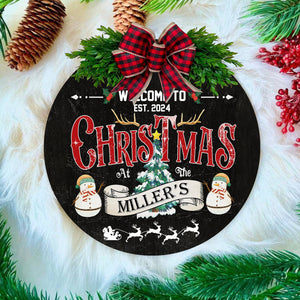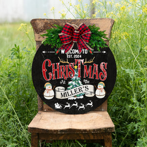 Welcome the holiday season with our charming Personalized Christmas Door Hanger! This festive decoration features a classic red and black plaid bow, lush greenery, and a warm welcome sign. The customizable name and year make it a truly unique addition to your front door.