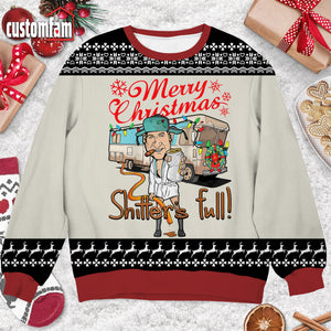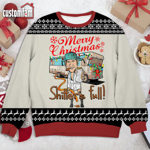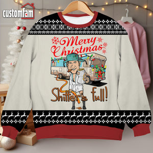 Bring holiday cheer and laughs to your festivities with this hilarious "Merry Christmas, Shitter’s Full!" Ugly Christmas Sweater. Inspired by an iconic movie moment, this sweater is sure to be the life of any holiday gathering. Combining vintage humor and festive designs, it’s perfect for anyone who appreciates a good laugh or a nod to classic holiday films.