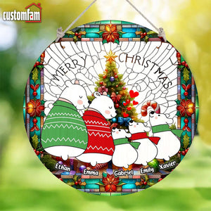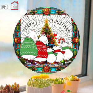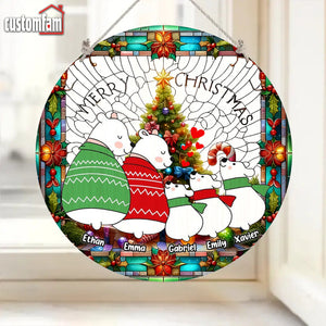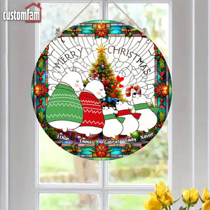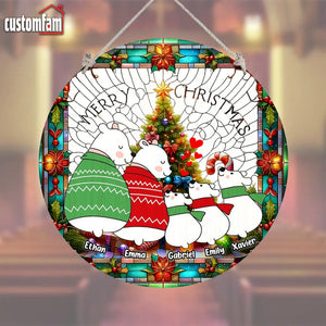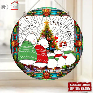 Merry Christmas Stained Glass Personalized Bear Family Window Suncatcher, Christmas Decor