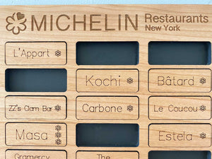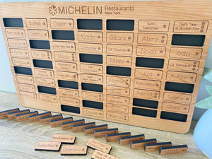 The ultimate foodie bucket list is here! This Michelin Star Restaurants Bucket List Tracker features all 66 of the Michelin Star restaurants in New York! The bucket list board is perfect for helping you to track which of the restaurants from The Michelin Guide you’ve visited. Each piece is labeled with the restaurant name and the corresponding number of Michelin Stars they’ve been awarded. Whether it’s you or a loved one who is into fine dining at the top establishments in New York, this board is the perfect way to track your visits and proudly display them in your home! It’s sure to be a unique conversation starter!