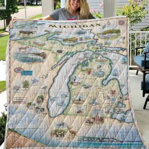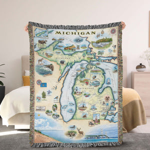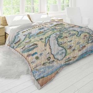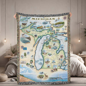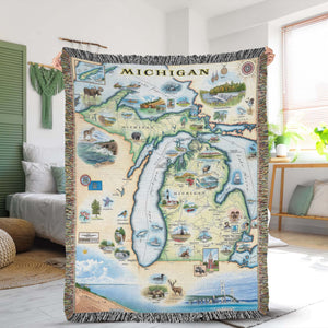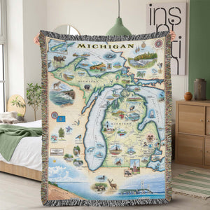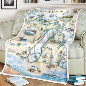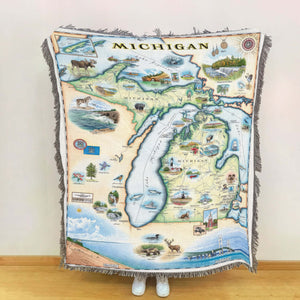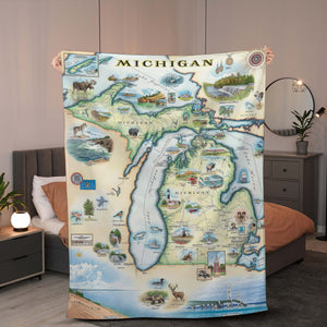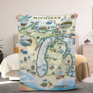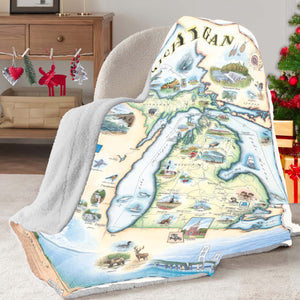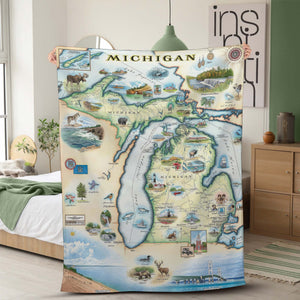 Michigan State Map Blanket, Gift For Travelers, Outdoor Gift