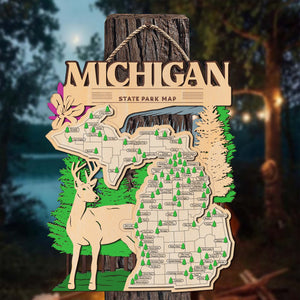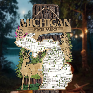 Embark on a journey through the beauty of America's state parks with the Michigan State Park Explorer Map. This handcrafted map is your canvas to showcase the diverse landscapes and adventures you have experienced. With a captivating outdoor theme background featuring everything your state has to offer, each map can be customized by adding a family name, creating a unique reflection of your outdoor exploration. This customization makes it an ideal gift or cherished family keepsake.
