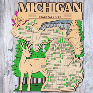 Michigan State Park Map, Personalized Travel Map, Gift For Travelers