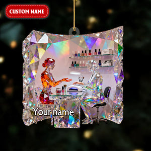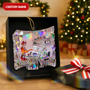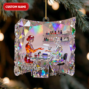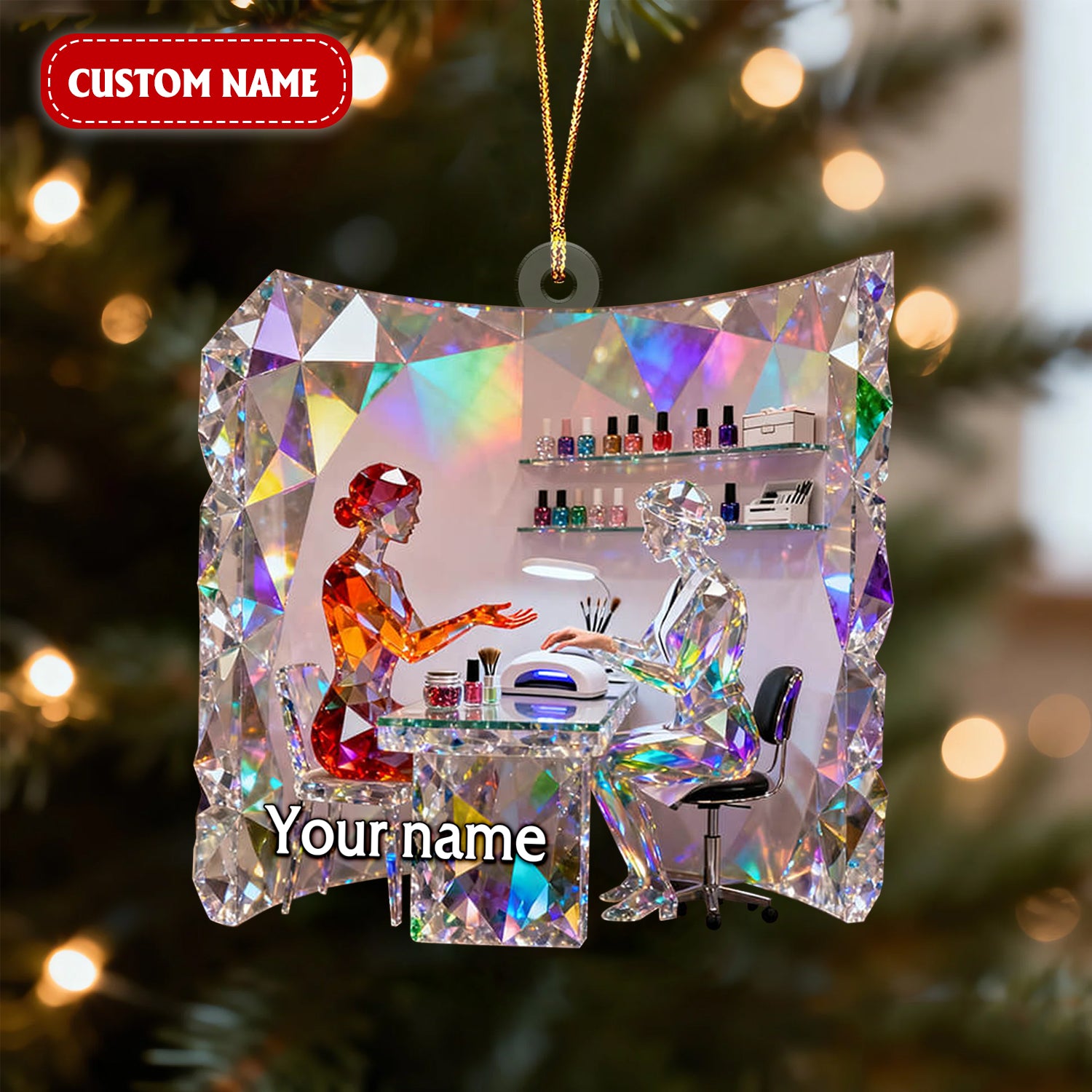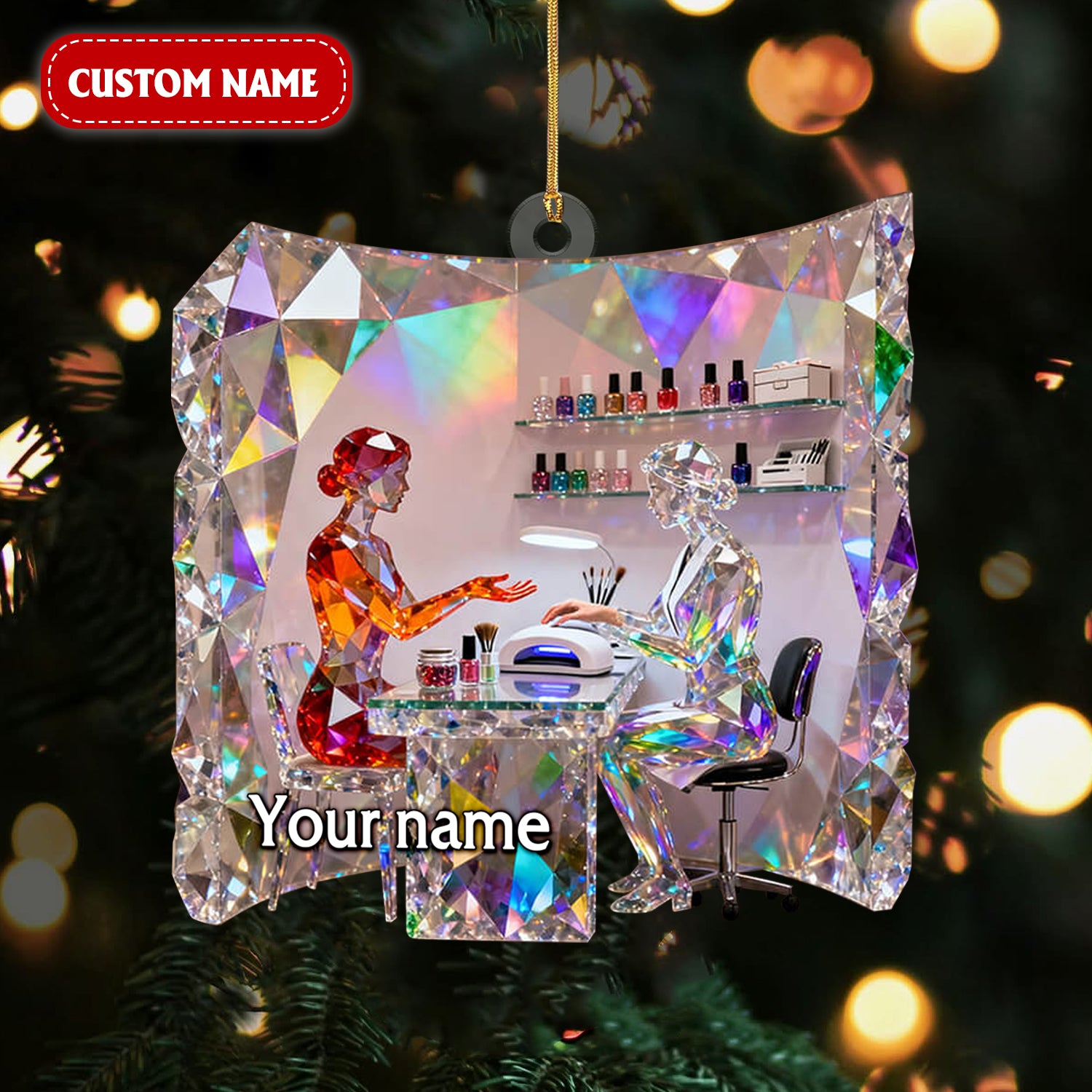 Mini Nail Salon Stained Glass Crystal Effect Acrylic Ornament, Christmas Ornament Nail Art, Christmas Unique Gift