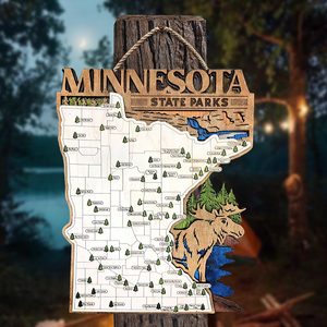 Embark on a journey through the beauty of America's state parks with the Minnesota State Park Explorer Map. This handcrafted map is your canvas to showcase the diverse landscapes and adventures you have experienced. With a captivating outdoor theme background featuring everything your state has to offer, each map can be customized by adding a family name, creating a unique reflection of your outdoor exploration. This customization makes it an ideal gift or cherished family keepsake.