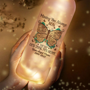 Missing You Always Son Personalized Memorial Bottle Lamp, Wine Bottle Lights, Gifts For Lost Loved Ones
