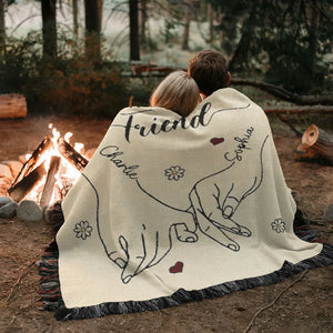 Mom And Daughter Holding Hand Custom Woven Blanket, Mother's Day Gift, Gift For Mom