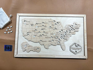 Mountains Bucket List With Pins, Fathers Day Gift, Gift for Adventurer