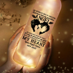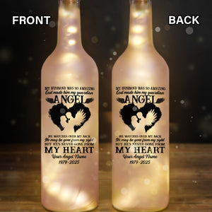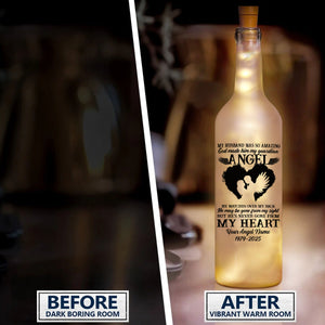 My Husband, My Guardian Angel Personalized Memorial Bottle Lamp, Wine Bottle Lights, Gifts For Lost Loved Ones