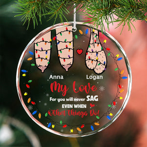 My Love For You Will Never Sag Even When Other Things Do Personalized Glass Christmas Ornament, Gift For Couple