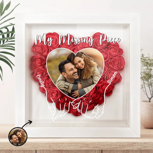 My Missing Piece Personalized Photo Flower Shadow Box, Valentine Gift For Couple