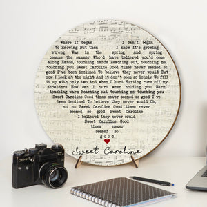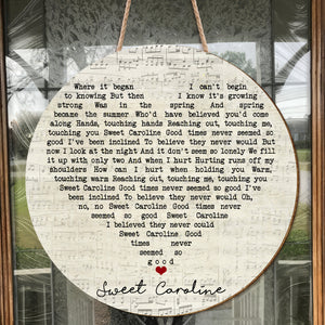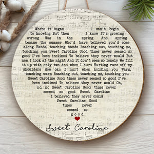 Neil Diamond Sweet Caroline Script Heart Song Lyric Music Art Print Round Wood Sign, Wood Signs For Home