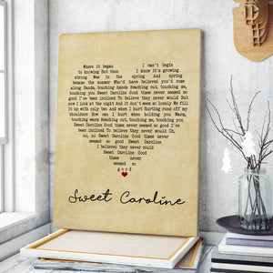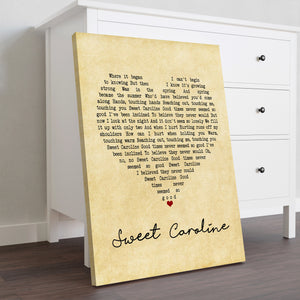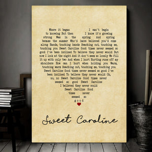 Neil Diamond Sweet Caroline Vintage Heart Song Lyric Music Art Print Canvas Print Frames