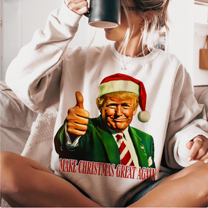 Get into the holiday spirit with a touch of humor and patriotism in the New President Trump 2024 Funny Christmas Sweatshirt! This playful and stylish sweatshirt features a bold and festive design, perfect for political enthusiasts and those who love a good laugh. With its witty slogan and eye-catching graphics, it makes a great conversation starter and a fun way to show support for the upcoming 2024 election season. Whether you're attending a holiday party, enjoying Christmas festivities, or just lounging at home, this sweatshirt offers comfort, warmth, and a touch of political humor.