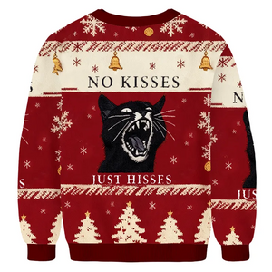 No Kisses Just Hisses Angry Black Cat Meme Ugly Sweater, Funny Christmas Ugly Sweatshirt, Xmas Ugly Sweater