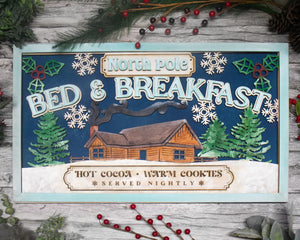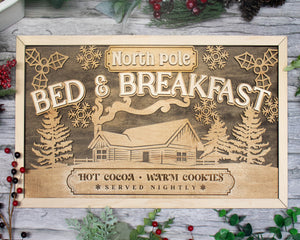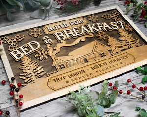 North Pole Bed and Breakfast Personalized Christmas Wood Sign, Holiday Decor