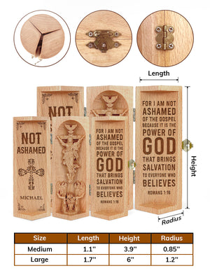 Not Ashamed, Personalized Openable Wooden Cylinder Sculpture of Jesus Christ, Christ Decor