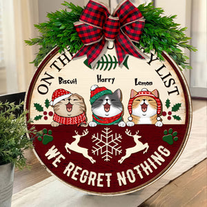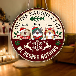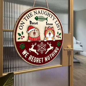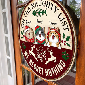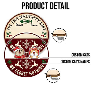 On The Naughty List Personalized Cats 2 Layered Christmas Wood Sign, Gifts For Cat Lovers