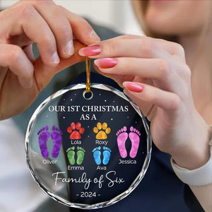 Our 1st Christmas Glass Ornament, Custom Footprints Ornament, Gift For Family