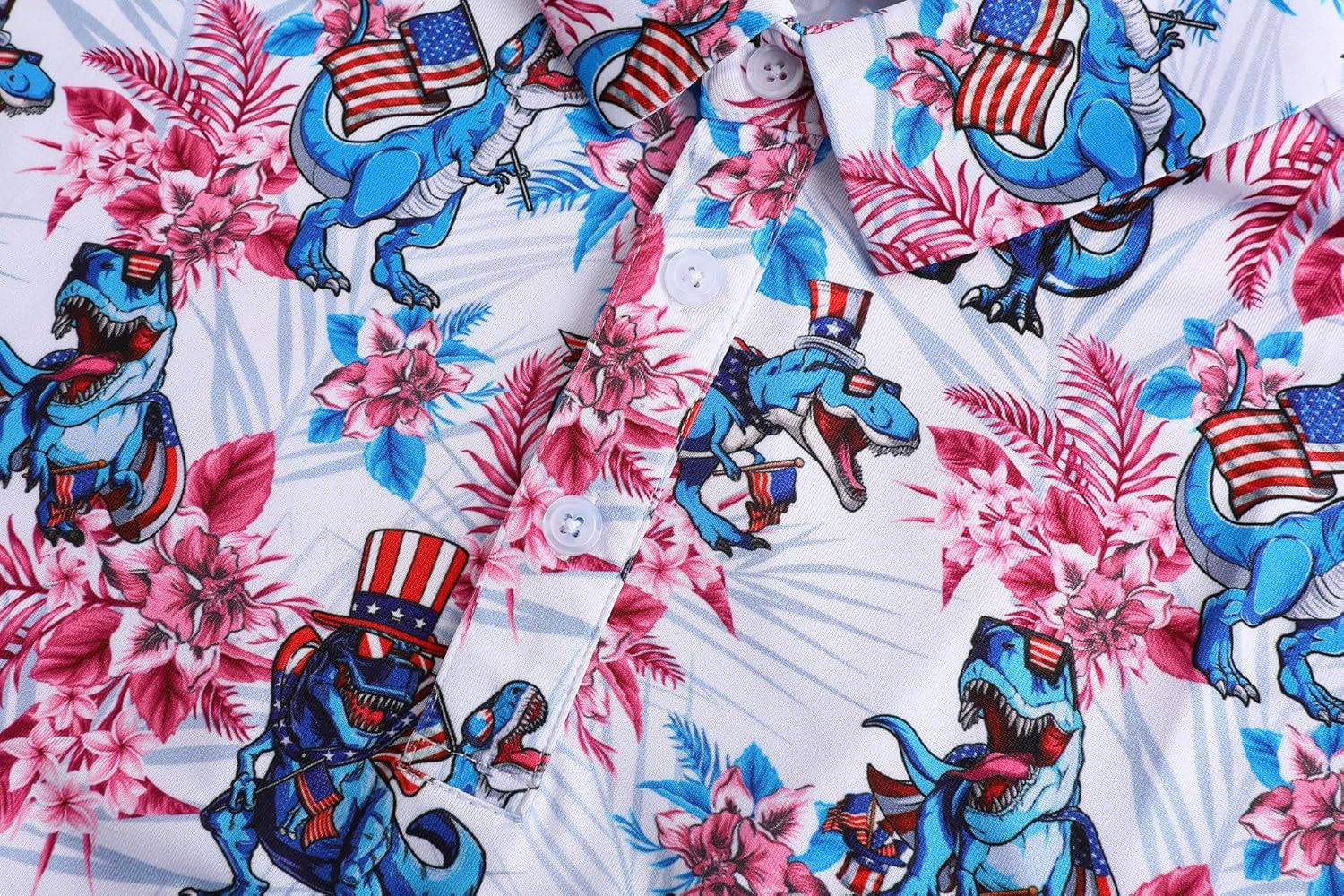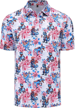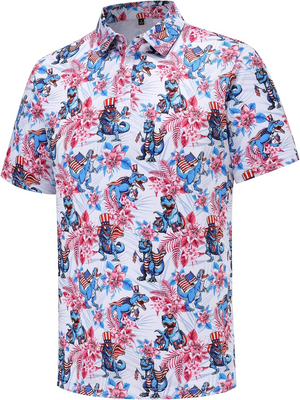 Patriotic American Dinosaurs Pride Golf Polo Shirts, Golf Gift For Men, Golf Shirts For Men