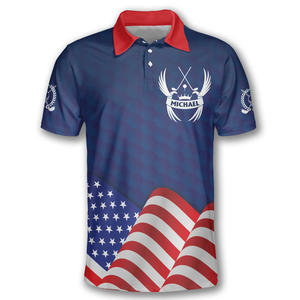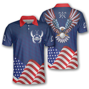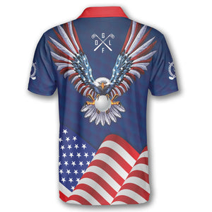 Patriotic Eagle Flag Blue Custom Golf Polo Shirts for Men, Long Sleeve Golf Shirts, Golf Lovers Gift