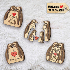 Penguin Family Customize Engraved Wood Puzzle, Mother's Day Gift, Father's Day Gift, Family Gift Idea