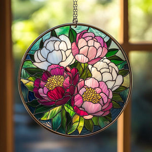 Peony Acrylic Window Suncatcher Ornament, Window Decor, November Birth Flower